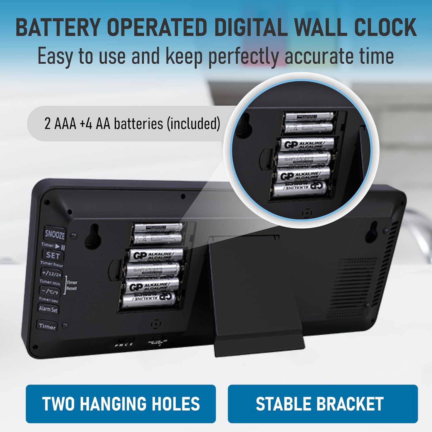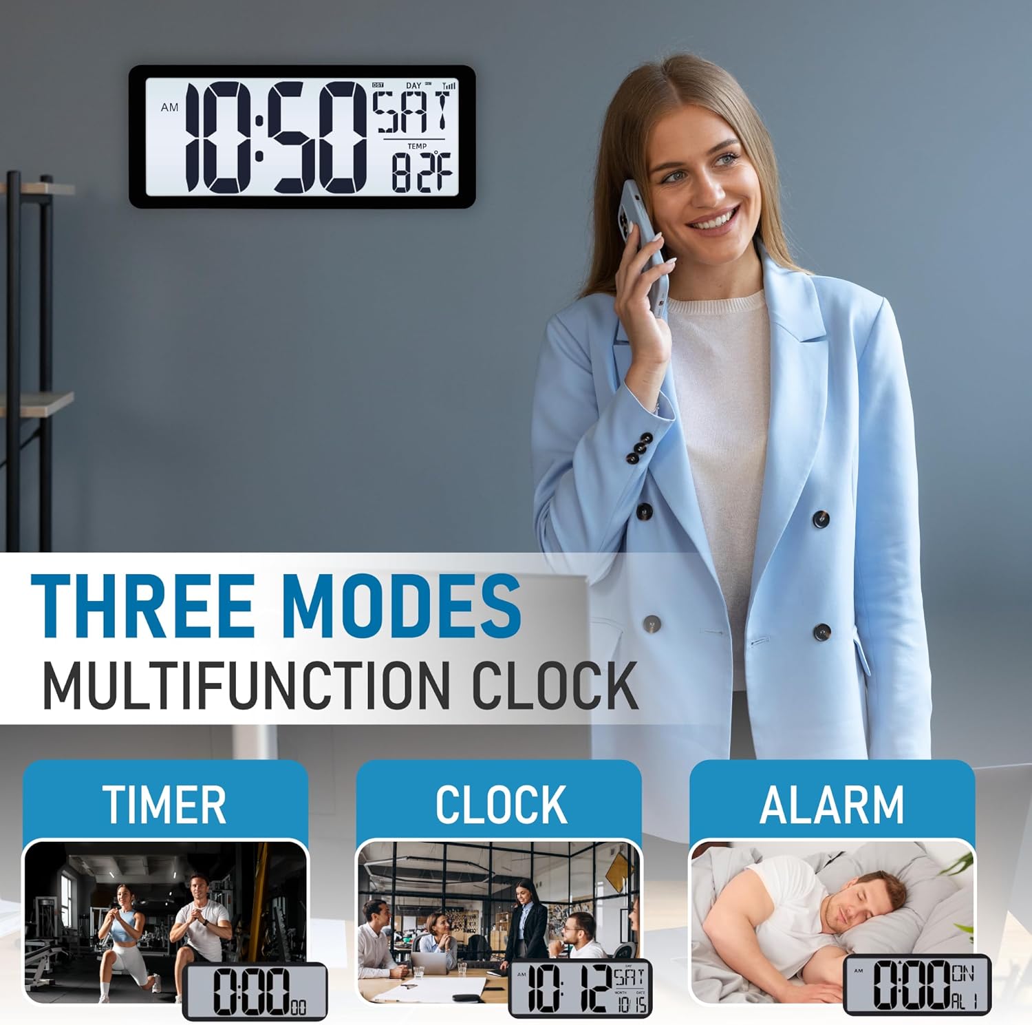 TXL Atomic Clock with Backlight, 14.2″ Large Digital Wall Clock Battery Operated, Digital Clock Large Display with Day, Date & Temperature, Large Wall Clock for Bedroom, Livingroom, Office