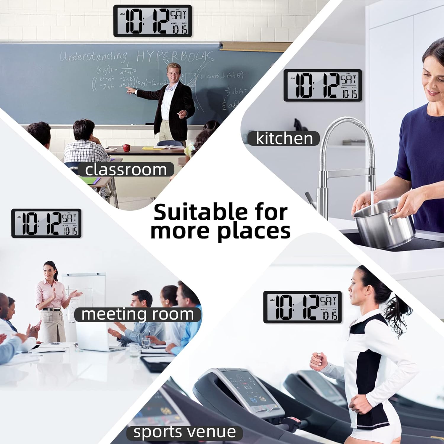 Introducing the TXL Atomic Clock with Backlight, a sophisticated and versatile addition to any space. This 14.2″ Large Digital Wall Clock is designed for ultimate convenience and functionality. Powered by batteries, this digital clock boasts a large display that is easy to read from across the room.